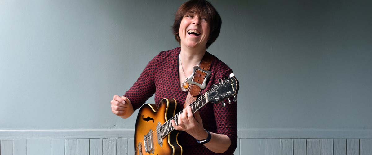 Deirdre Cartwright is an award winning guitarist and composer who became well known presenting the BBC TV’s ground-breaking series ‘Rockschool’. She also played with Afro Latin Jazz group The Guest Stars, recording three albums and toured in 17 countries.